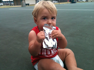 Oh, and his new favorite treat....a juice box! This is the end all, cure all, for every infant meltdown at soccer games, basketball practice, beach day, you name it. Capri sun cures all!