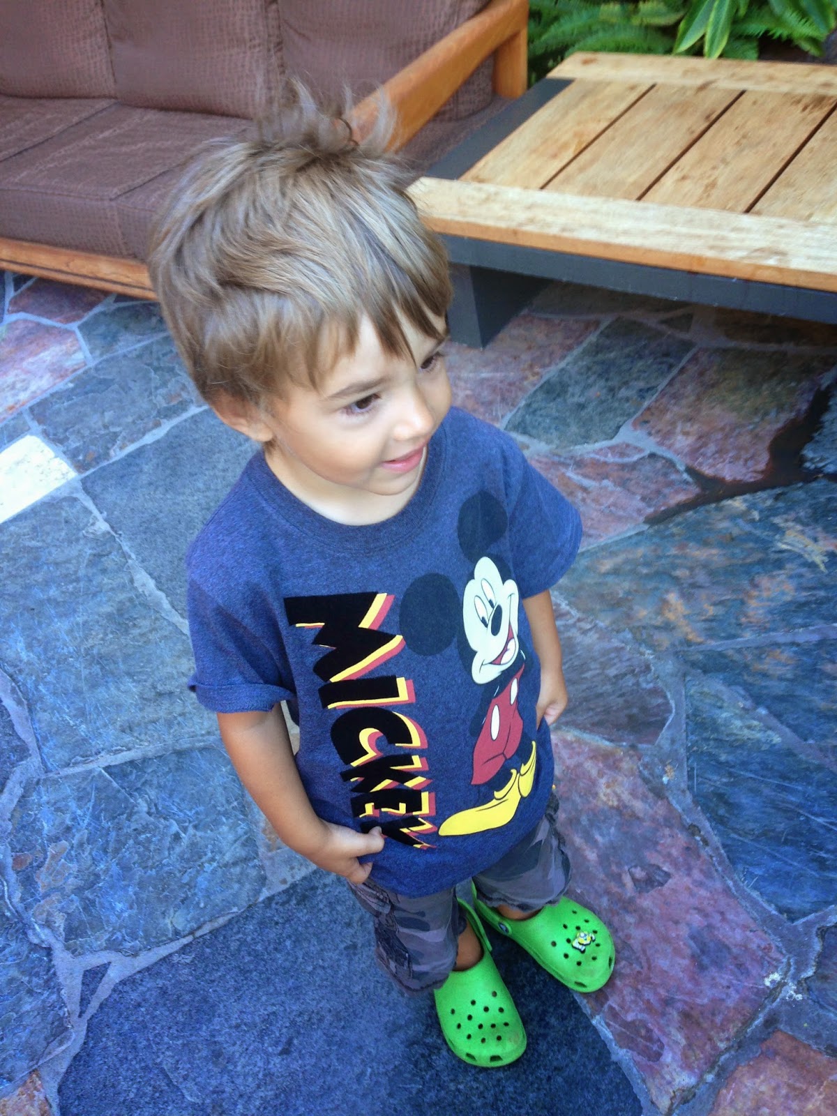 Saturday morning while Dad golfed, Jonah and I walked over to Aulani, the Disney resort to snap a picture with Mickey. He stood in awe at the sight of him. "Mom, that's the real Mickey?"